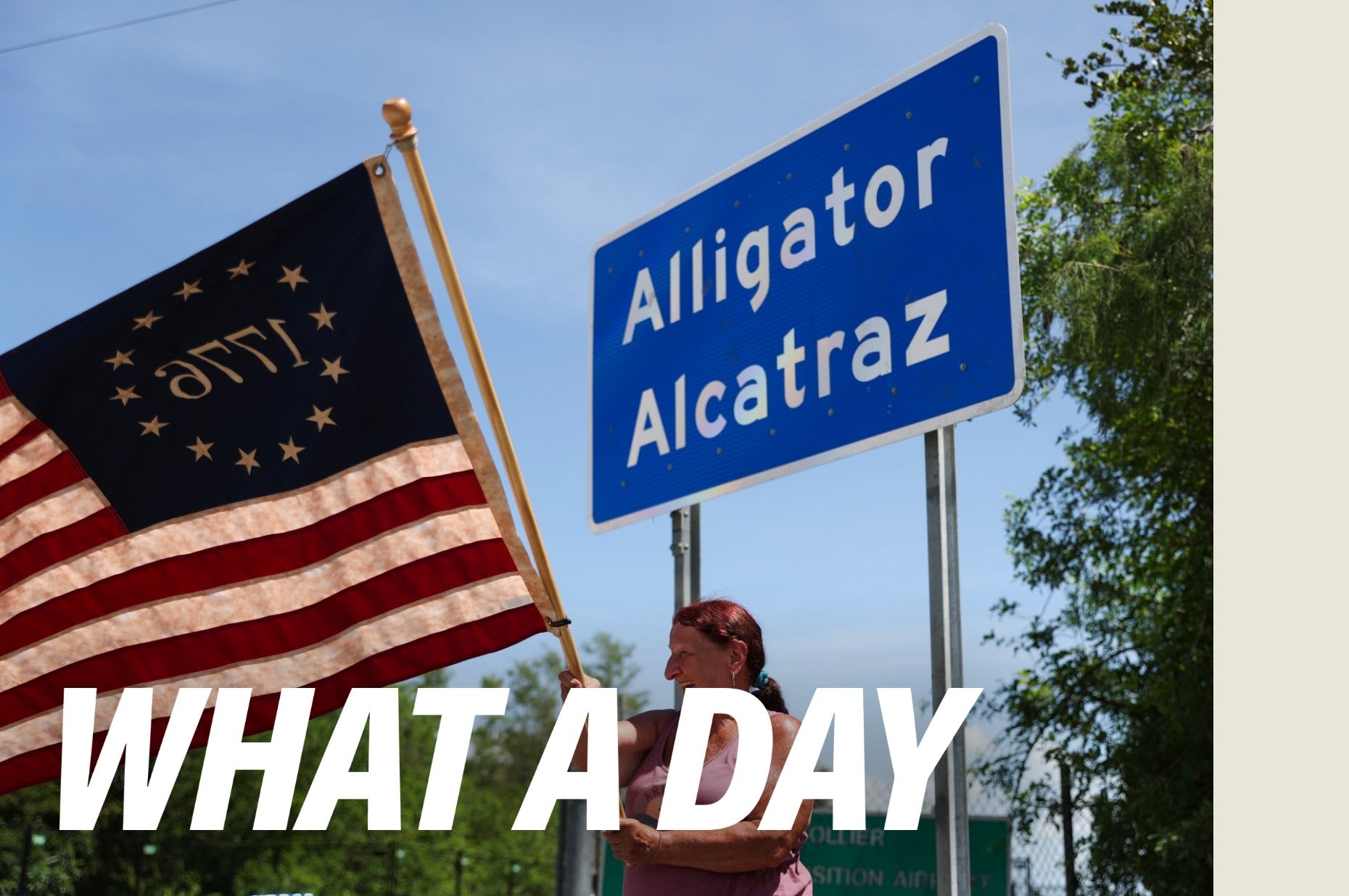 Jane Coaston: Yes, criminal illegal aliens. Like a 15-year-old boy with no criminal history who spent three days at the facility, which is supposed to be for adults. That’s according to the Miami Herald. The paper also found hundreds of people at the facility for, quote, “criminal illegal aliens have no criminal convictions or pending charges at all.” And it’s worth pointing out that the Herald was only able to learn this information because it got a copy of a list of detainees. The government isn’t revealing who is at the detention center, and even immigration attorneys say they’re not being told if their clients have been sent to the site. Some detainees and legal aid groups are taking part in a class-action lawsuit challenging the lack of access to legal representation. According to the detainee themselves, the conditions in the makeshift facility are horrible. Floors flooded with wastewater, worm-ridden food, and clouds of mosquitoes. A former guard told the Washington Post she only lasted a week working at the center, because the conditions for detainees and for staff, were so bad. Which I’m sure is just part of the fun for the Trump administration. Florida Democratic Representative Maxwell Frost visited the Everglades facility last week. I talked to him about his experience and what he wants Democrats to do next. Representative Frost, welcome to What a Day.