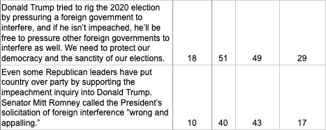 - The most persuasive message about impeachment has to do with Lt. Col. Vindman’s testimony that the White House doctored the summary of Trump’s call with the President of Ukraine. We presented voters with a series of arguments in the table below about why Trump deserves to be impeached, and Republicans reacted slightly more positively to one about Lt. Col. Vindman. Messages about how the President isn’t above the law and how Trump abused his power were also at the top of the list.