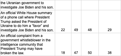 - The most persuasive pieces of evidence are the testimony from Trump officials and White House obstruction. We presented voters with a list of evidence that has emerged from the Ukraine scandal. As the table below shows, the evidence that made people say they’re most likely to support impeachment has to do with damning testimony from Trump officials, Mick Mulvaney’s admission of a quid pro quo, the White House hiding call transcripts on a secret server, and the White House blocking officials from testifying. But, overall, the margins were fairly slim on every piece of evidence.