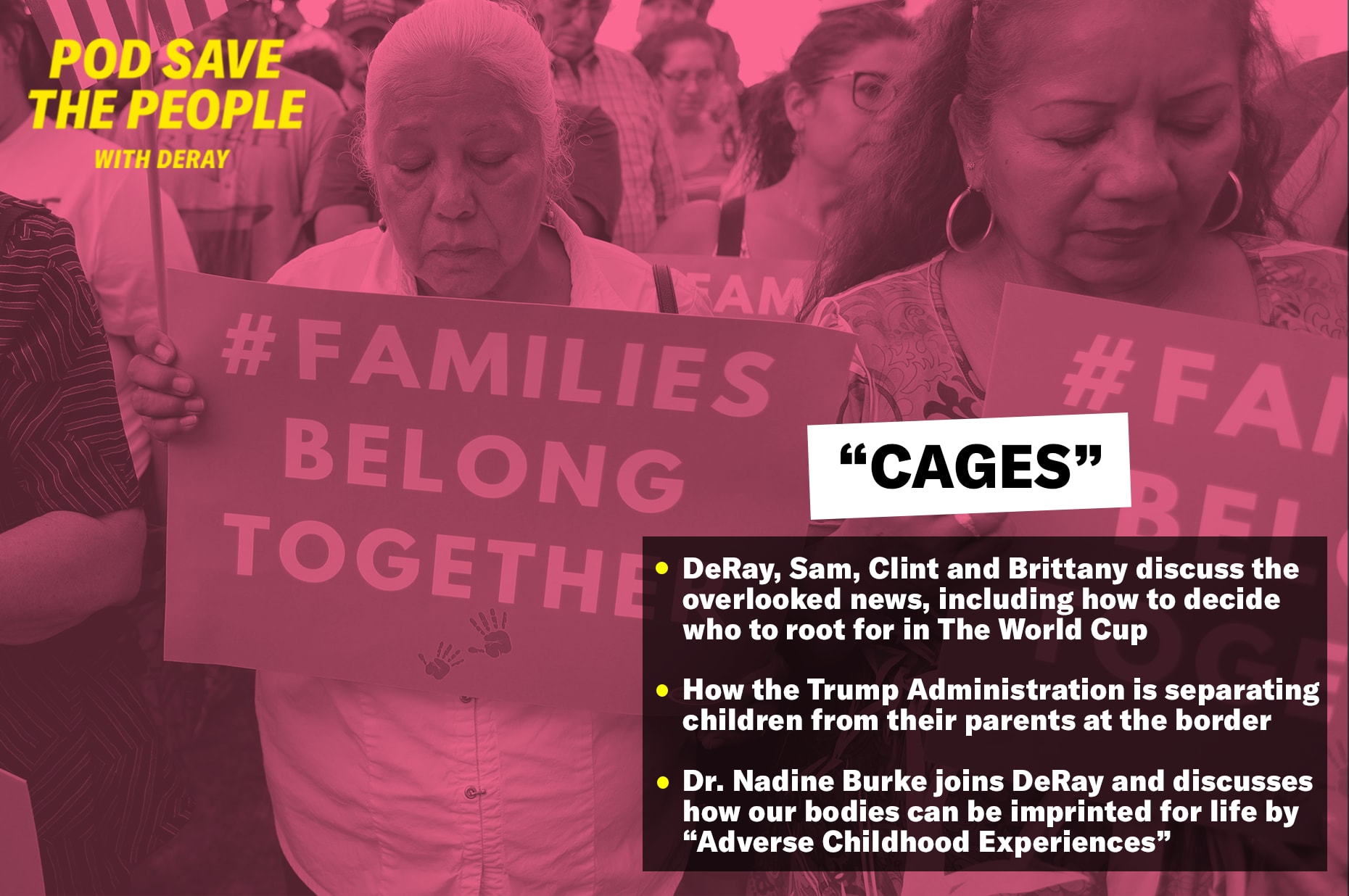 DeRay, Sam, Clint, and Brittany discuss the overlooked news, including how to decide who to root for in The World Cup and how the Trump Administration is separating children from their parents at the border. Dr. Nadine Burke joins DeRay and discusses how our bodies can be imprinted for life by “Adverse Childhood Experiences”—like abuse, neglect, parental addiction or mental illness.