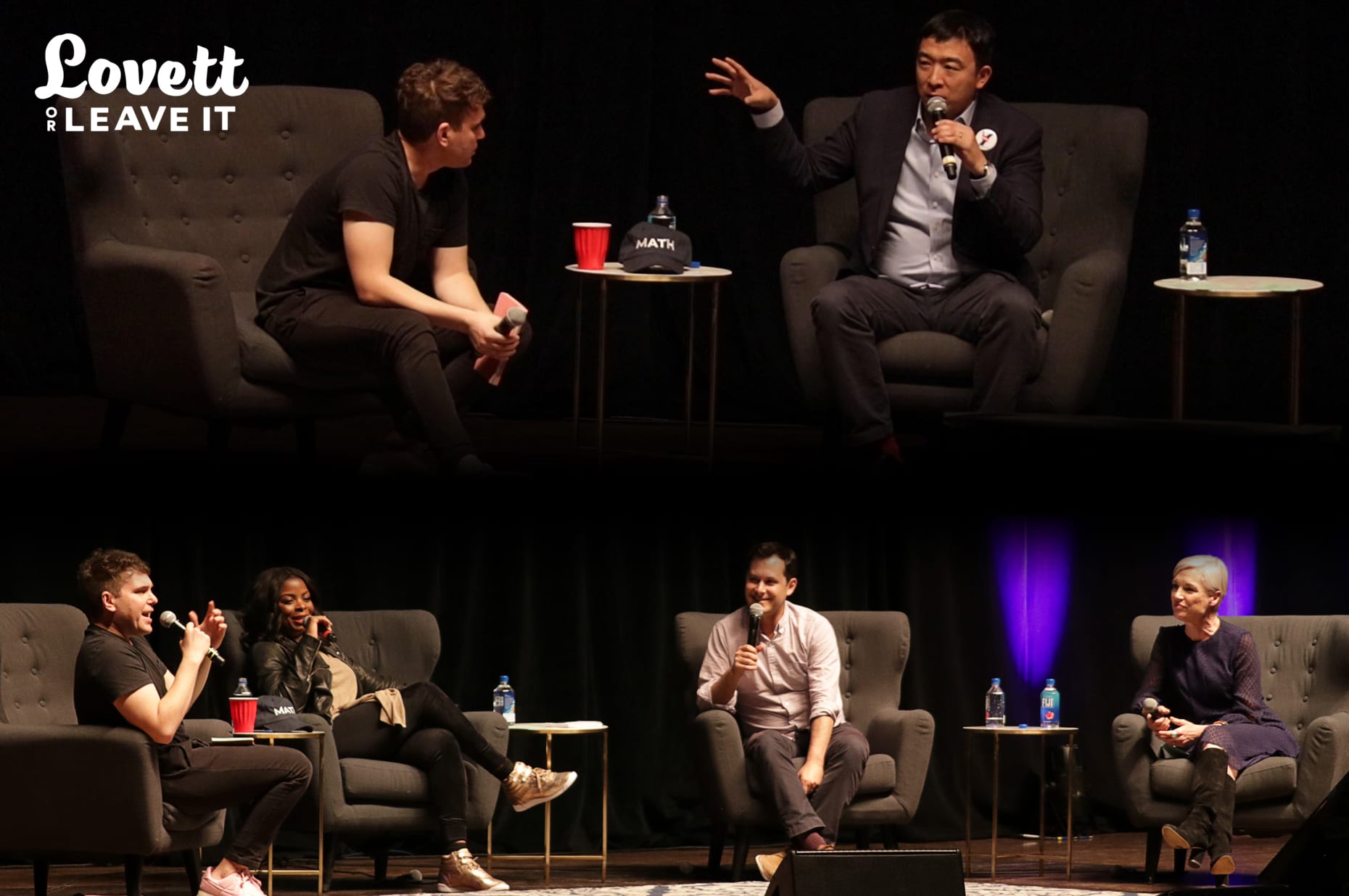 Trump purges DHS over immigration. Republican legislatures pass draconian anti-abortion laws. And Tucker Carlson can’t understand code switching even though he does it on television every single night. Democratic presidential candidate Andrew Yang joins Jon on stage live in Boston to talk universal basic income and memes. Plus Cecile Richards, Sam Stein, and Janelle James join to talk about the democratic primaries, scammers at congressional hearings, the lessons of Shazam, and all the week’s news. Oh and don’t forget, HARVARD TAKES BRIBES. Thanks Boston!