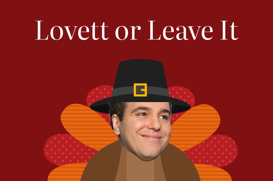 Lovett is currently asleep under a big pile of coats on the guest bed, but we here at Lovett or Leave It have prepared you a sumptuous feast of favorite segments, hand-selected by all the non-Lovett members of the LOLI universe. Join producers Brian Semel and Kendra James, associate producer Malcolm Whitfield, head writer Halle Kiefer, managing video producer Narineh Melkonian, and producer/editor Zuri Irvin as they share moments from this year’s Pride Show, our tour in Pennsylvania, and more. Don’t worry, we’ll carry Lovett to the car and make sure he’s home in time for next week’s show. Have a great Thanksgiving, everybody!