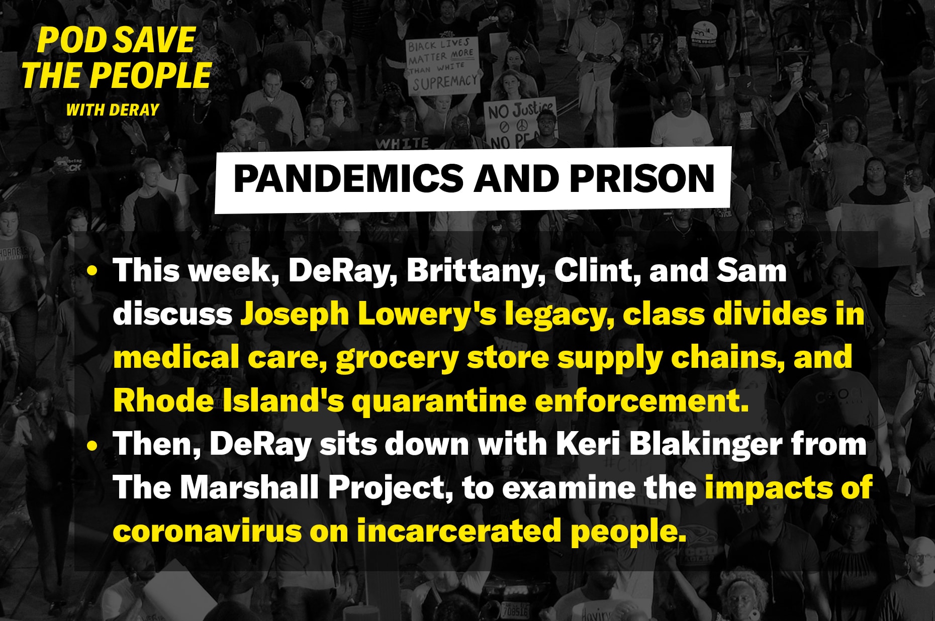 This week, DeRay, Brittany, Clint, and Sam discuss Joseph Lowery’s legacy, class divides in medical care, grocery store supply chains, and Rhode Island’s quarantine enforcement. Then, DeRay sits down with Keri Blakinger from The Marshall Project, to examine the impacts of coronavirus on incarcerated people.