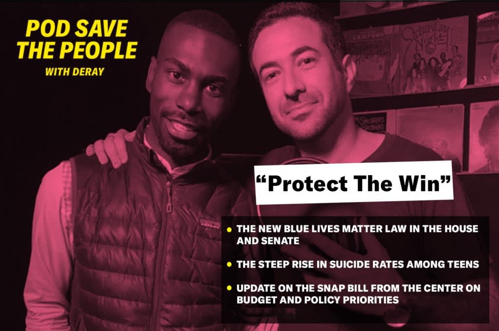 DeRay, Sam, Brittany and Clint talk about the new blue lives matter law in the House and Senate, a steep rise in suicide rates among teens, the Royal Wedding, and more. Ari Melber joins DeRay to talk about Michael Cohen, Giuliani and #muteRKelly, and we have a short update on the SNAP bill from the Center on Budget and Policy Priorities.