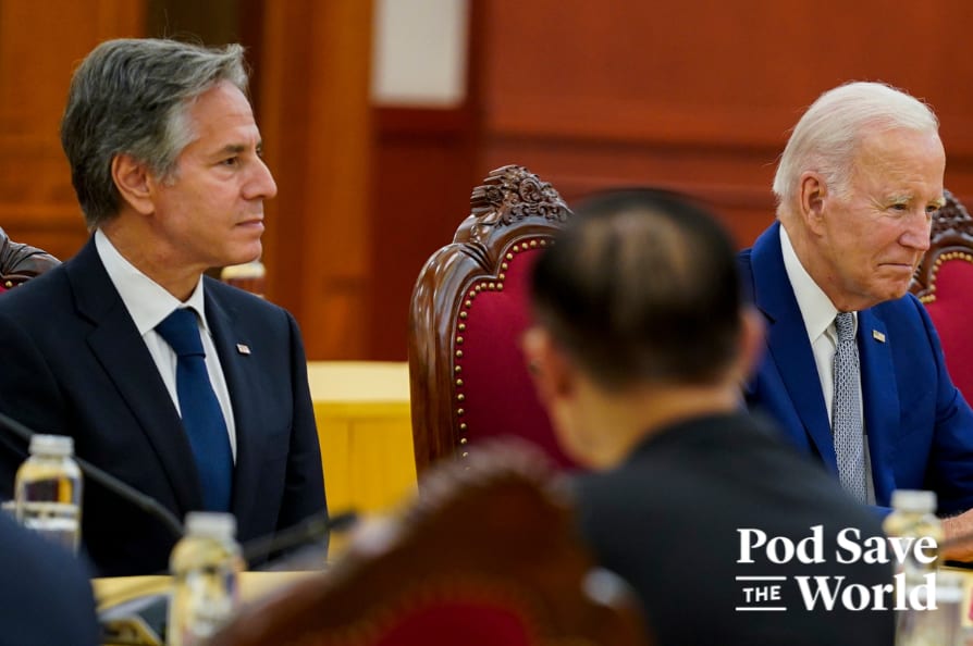 Tommy and Ben talk about Kim Jong Un’s trip to meet with Vladimir Putin, Viktor Bout’s entrance into local Russian politics, Armenia’s diplomatic shift away from Russia, and a positive development in Nagorno-Kabarakh region. They also dig into an escalation into the economic war between the US and China, allegations about an undercover Chinese spy in the UK parliament, Biden’s trip the Vietnam and political value of foreign trips, Mexico’s future female president, the resignation of Spain’s head soccer official, a Florida man trying to cross the Atlantic in a hamster wheel and a red wine flood. Then US Secretary of State Antony Blinken joins to discuss the war in Ukraine, the G20, a reported Saudi Arabia-Israel normalization deal and more.