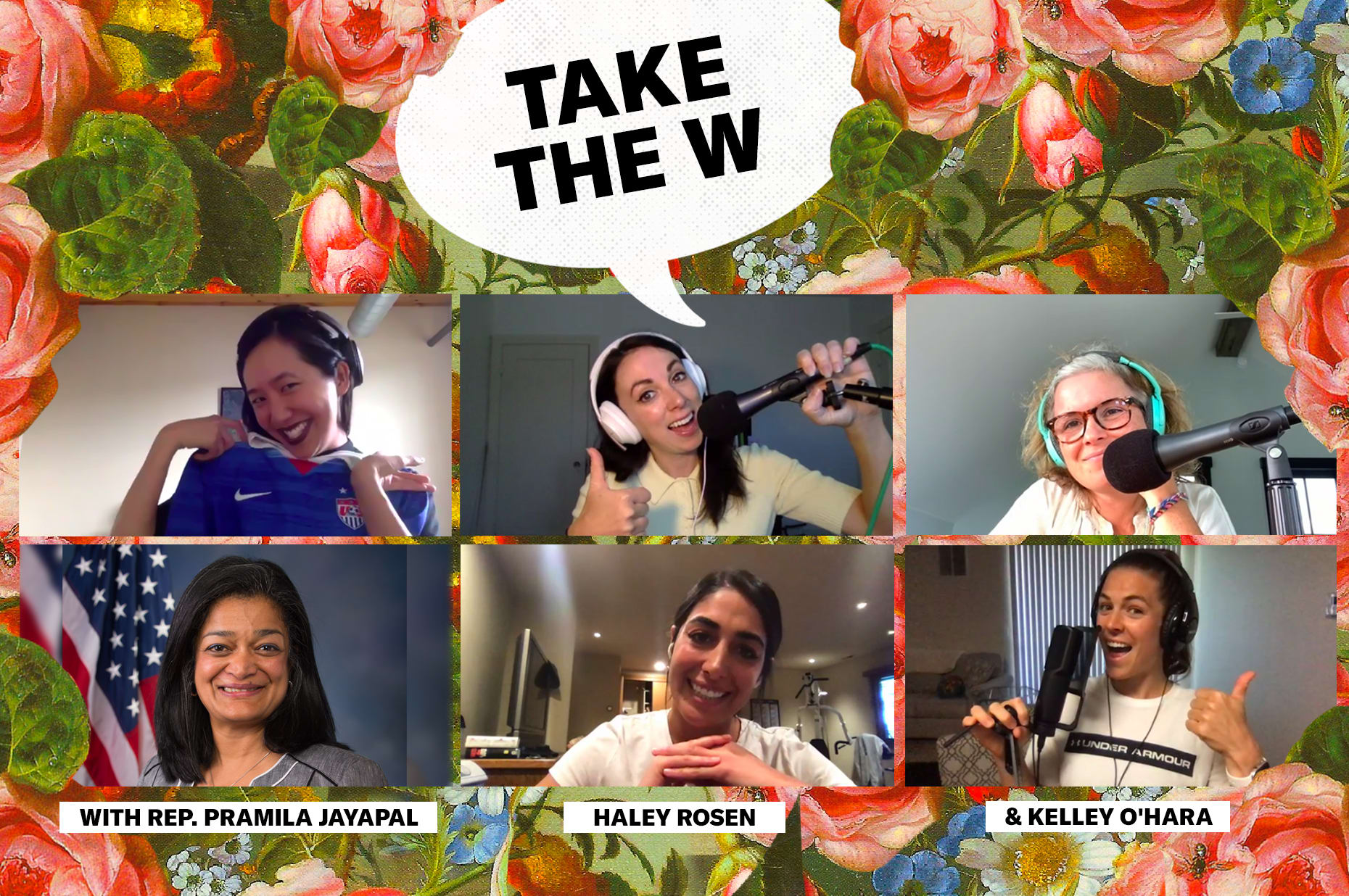 This week Erin Ryan and Alyssa Mastromonaco chat with Congresswoman Pramila Jayapal to get some tips on how to gracefully handle being right all the time. Then USWNT player Kelley O’Hara and Just Women’s Sports founder Haley Rosen stop by to discuss why supporting women’s sports is the next step in total world domination. Then, a check-in on the jam scandal of our time in I Feel Petty.
