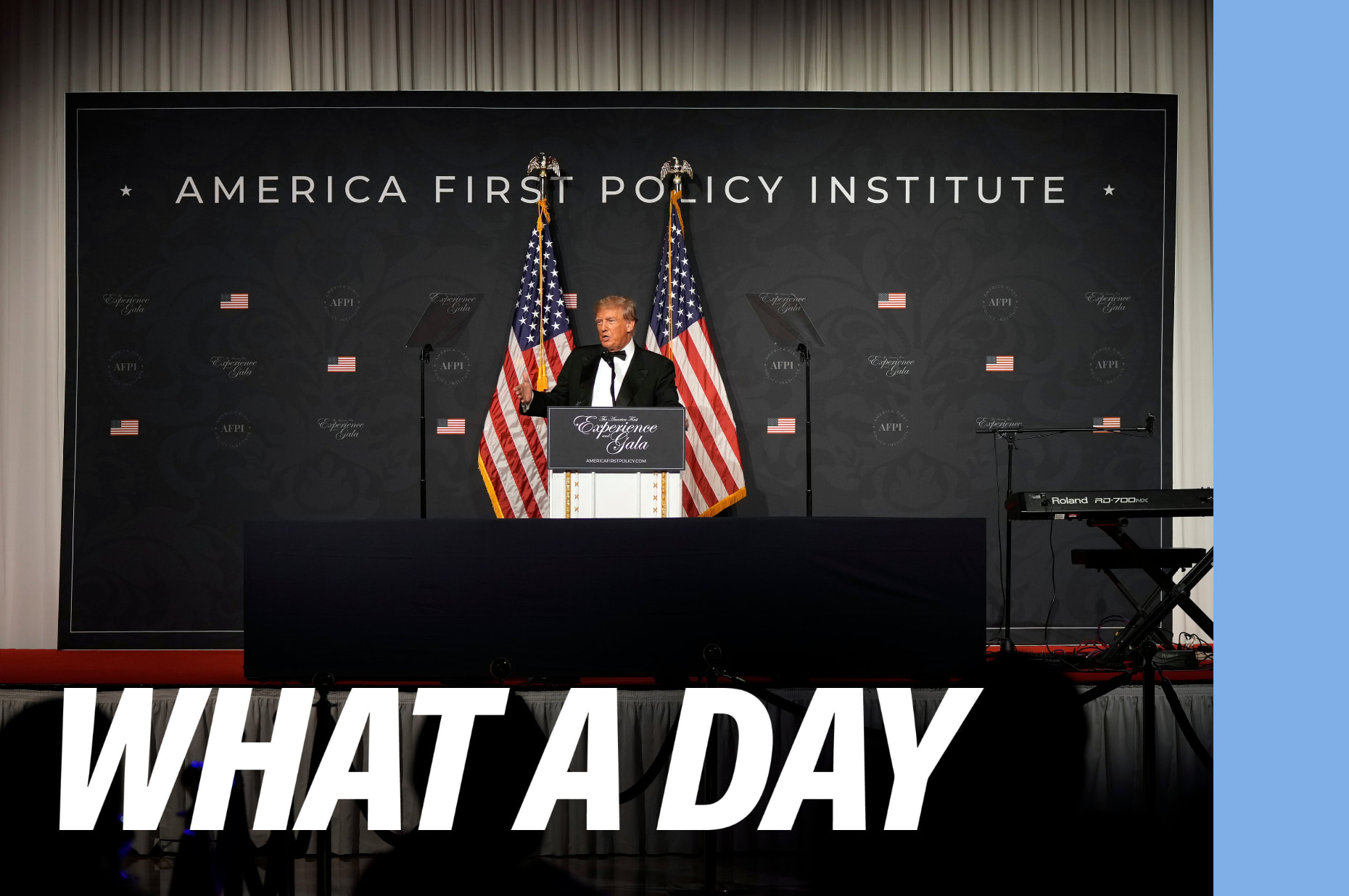 [clip of Donald Trump] I want to begin by thanking the America First Policy Institute. My, my have you come a long way, for hosting me for today’s remarks and in particular to recognize America First Policy Institute President Brooke Rollins. Brooke, [cheers] fantastic woman.