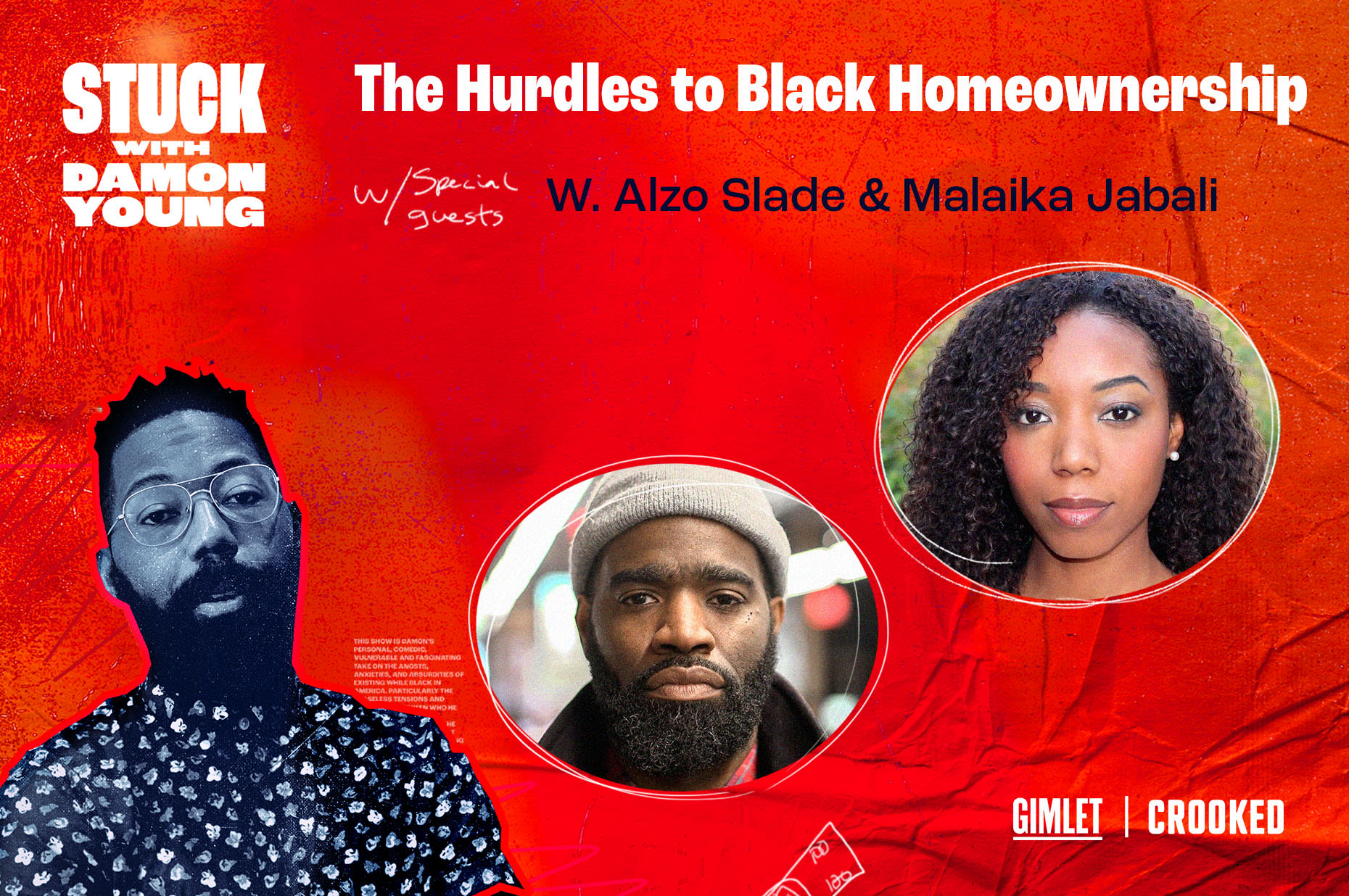 Damon Young: Exactly. And then one day I wake up, I go out to my car it’s gone. I call the cops. I’m like, yo, someone stole my car. You can almost hear the cop on the other end like, nigga. [laughter] You’re broke ass. You weren’t a victim of a crime. Maybe crime of being broke. [laughs] Welcome back everyone to Stuck with Damon Young. The show where we’re all dealing with PTBD, post traumatic brokenness disorder. So housing is a human right? Well, it should be a human right. And like many other rights in this country, Black Americans have had restricted and conditional access to housing for as long as we’ve been here. Redlining, loan denial, criminal background checks. I mean, the list is endless because the list is arbitrary, because the list just continues to grow, because they continue to find new ways for us to be discriminated against and denied. And to talk about some of the barriers in place for us to own homes and sometimes even just to rent. I’m joined by Vice news correspondent Alzo Slade who, like me, has also had an intimate relationship with home based discrimination. And then for dear Damon, I’m joined by Essence magazine Senior Politics Editor Malaika Jabali. As we put our heads together to try to see if the concept of a chivalry needs any updates. All right y’all. Let’s get it. [music plays] Alzo Slade is a correspondent at Vice News, among many other things. I mean, you could see him. [laughs] If you’re ever in Eaton Hotel in DC, you will see him on a screen somewhere and on television screens near you. Alzo. Do you remember the first time we met?