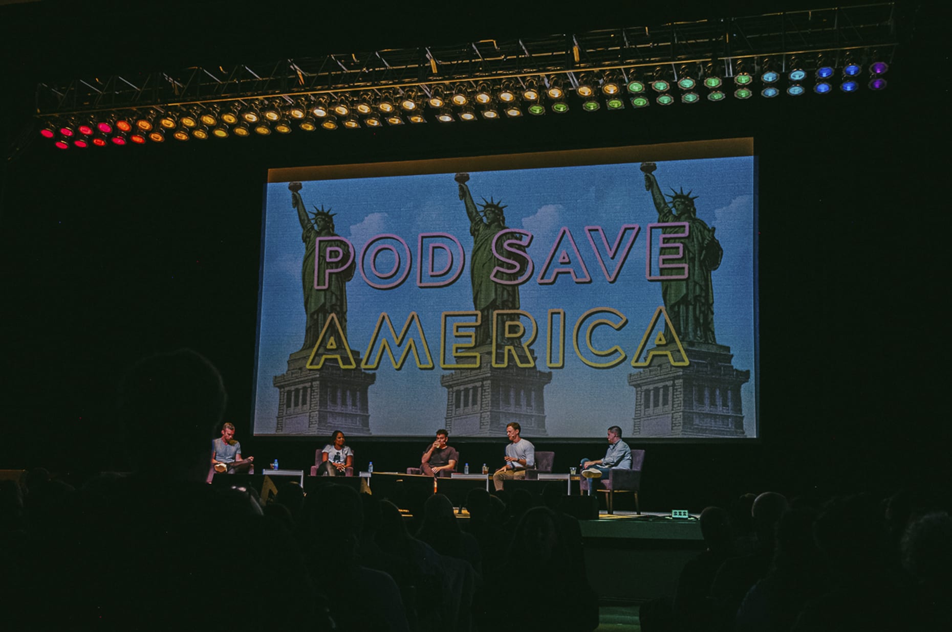 The Democratic primary is relatively stable heading into the fall campaign, voters are still trying to define electability, and Stacey Abrams passes on 2020 to focus on protecting the right to vote. Jemele Hill of The Atlantic joins Jon, Jon, Tommy, and Dan on stage at The Greek Theatre in Los Angeles. Amanda Seales joins for a special edition of OK Stop, and Maggie Rogers, Jim James and Best Coast play a round of Pollercoaster Tycoon: Family Feud Edition.