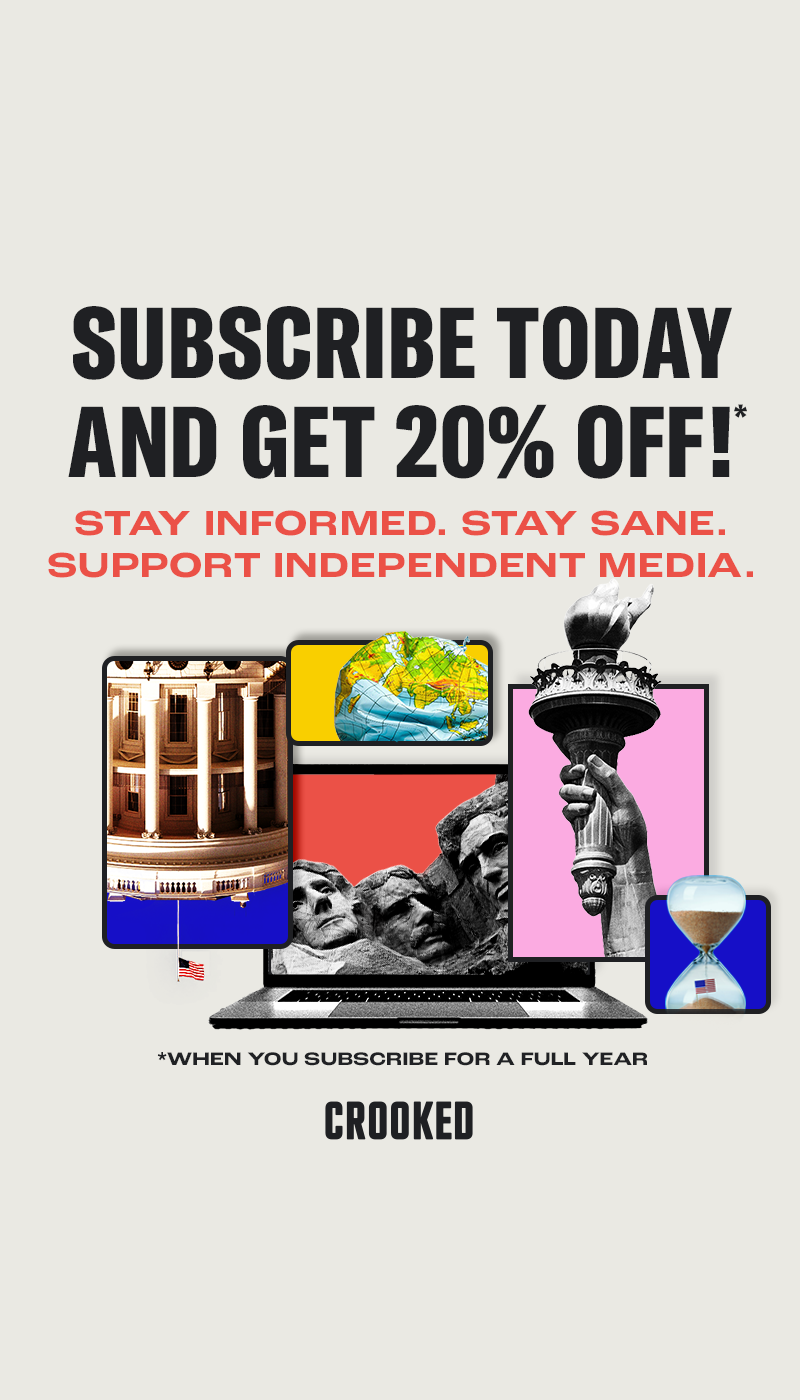 Donald Trump, his administration, and the Supreme Court are testing the limits of our democracy. With the 2026 midterms approaching, staying informed is more important than ever. At Crooked, we deliver honest, no-bullshit reporting and analysis, no matter how intense the attacks on the press get. The best way to support that work? Join Friends of the Pod today and get 20% off a full-year subscription, stay informed and back independent media.