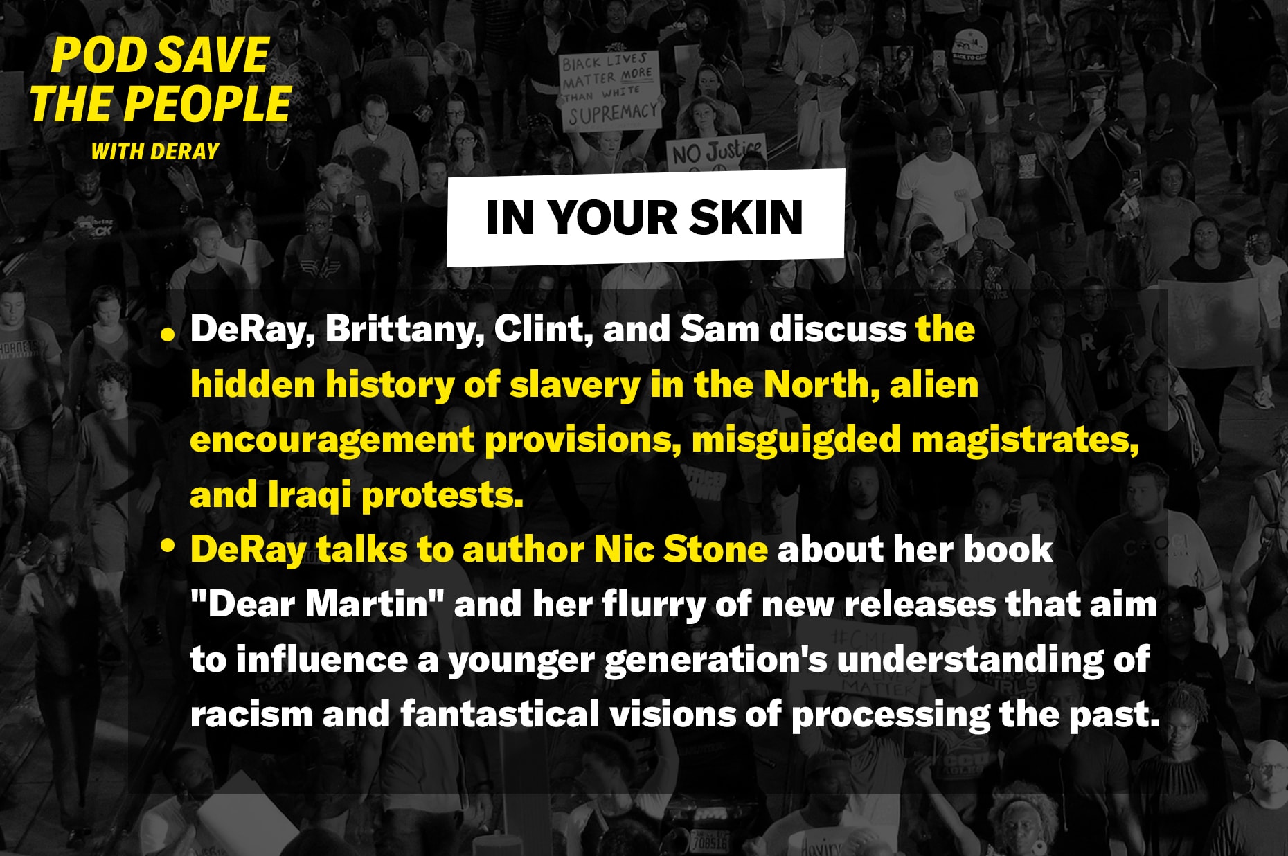 DeRay, Brittany, Clint, and Sam discuss the hidden history of slavery in the North, alien encouragement provisions, misguided magistrates, and Iraqi protests. DeRay talks to author Nic Stone about her book “Dear Martin” and her flurry of new releases that aim to influence a younger generation’s understanding of racism and fantastical visions of processing the past.