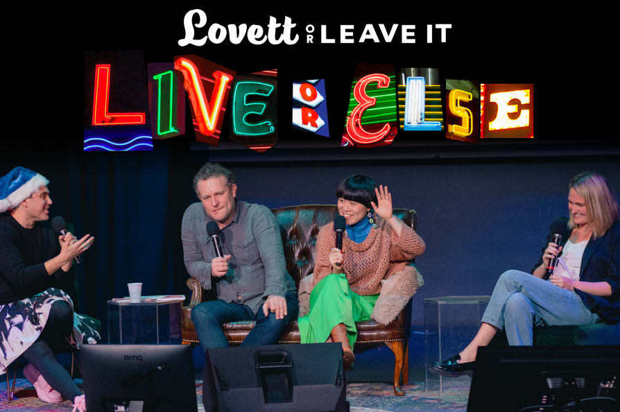 Lovett Or Leave cozies up in front of the roaring fire we’ve hurled 2022’s desiccated hull into during this, our last show of 2022. Mike Lindell (James Adomian) stops by with pillows for all the good little boys and girls of the RNC. Jena Friedman and Atsuko Okatsuka pull up a chair to your family’s holiday drama. Elon Musk (James Adomian) tries his hand at stand-up and spoiler alert: the audience is wrong. Lovett provides a personalized gift guy for the right-wing whack jobs in your life, and we end by putting our grateful well-wishes in the Thank Bank. Happy Holidays, everybody, and see you in 2023!