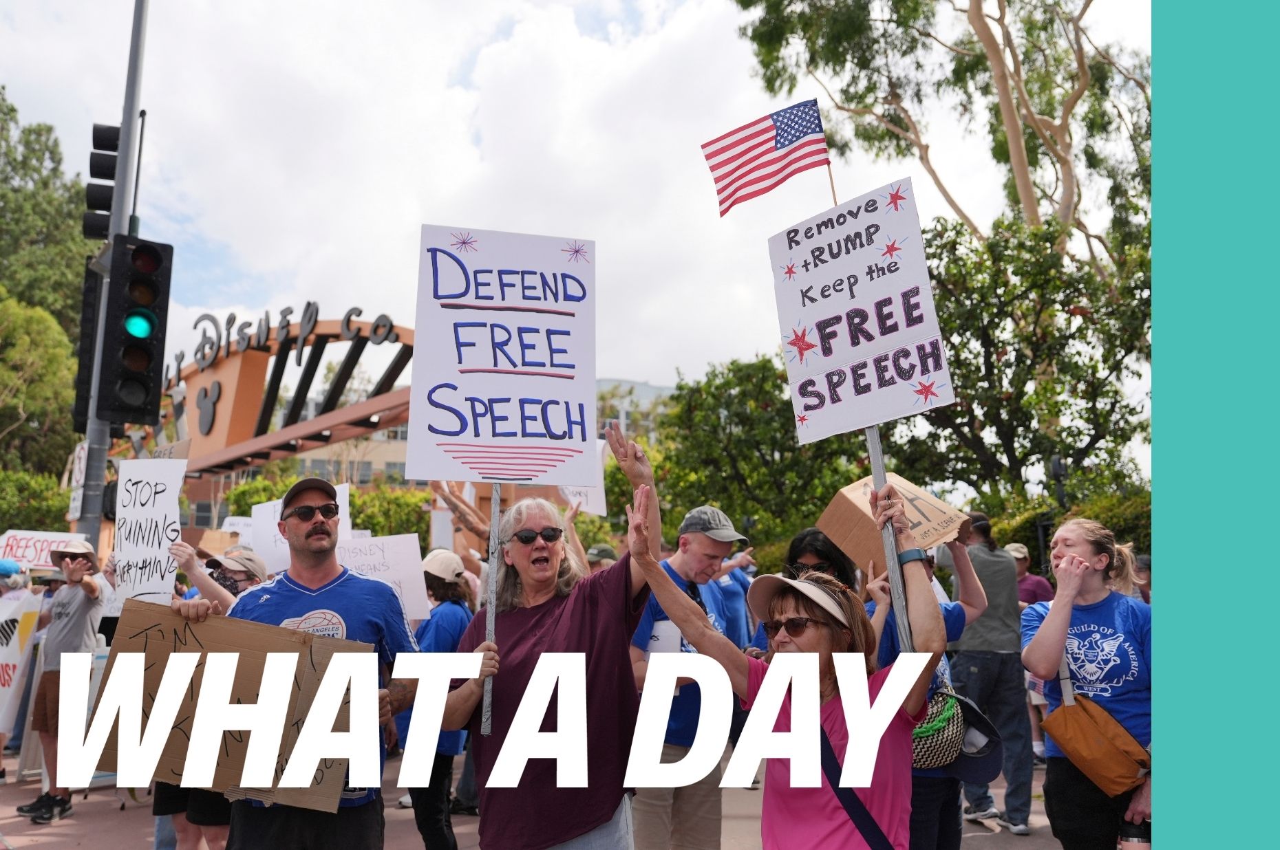 Jane Coaston: It’s Monday, September 29th, I’m Jane Coaston and this is What a Day, the show that is thinking about New York City Mayor Eric Adams who once said, quote, “all my haters become my waiters when I sit down at the table of success.” With his exit from the mayoral race, will those waiters lose their jobs? [music break] On today’s show, Oregon sues the Trump administration to stop the deployment of the state’s National Guard to protect federal buildings. And Israeli Prime Minister Benjamin Netanyahu changes his story on what happened with those bunker busters in Iran. But let’s start with free speech. We’ve been talking a lot about speech on the show lately and for good reason. Because late night talk show host Jimmy Kimmel is just the start. Following the assassination of conservative activist Charlie Kirk, a wave of everyday people have been punished, getting doxed and even losing their jobs. Because of statements they made online regarding Kirk and his death. Here’s CNN from earlier this month.