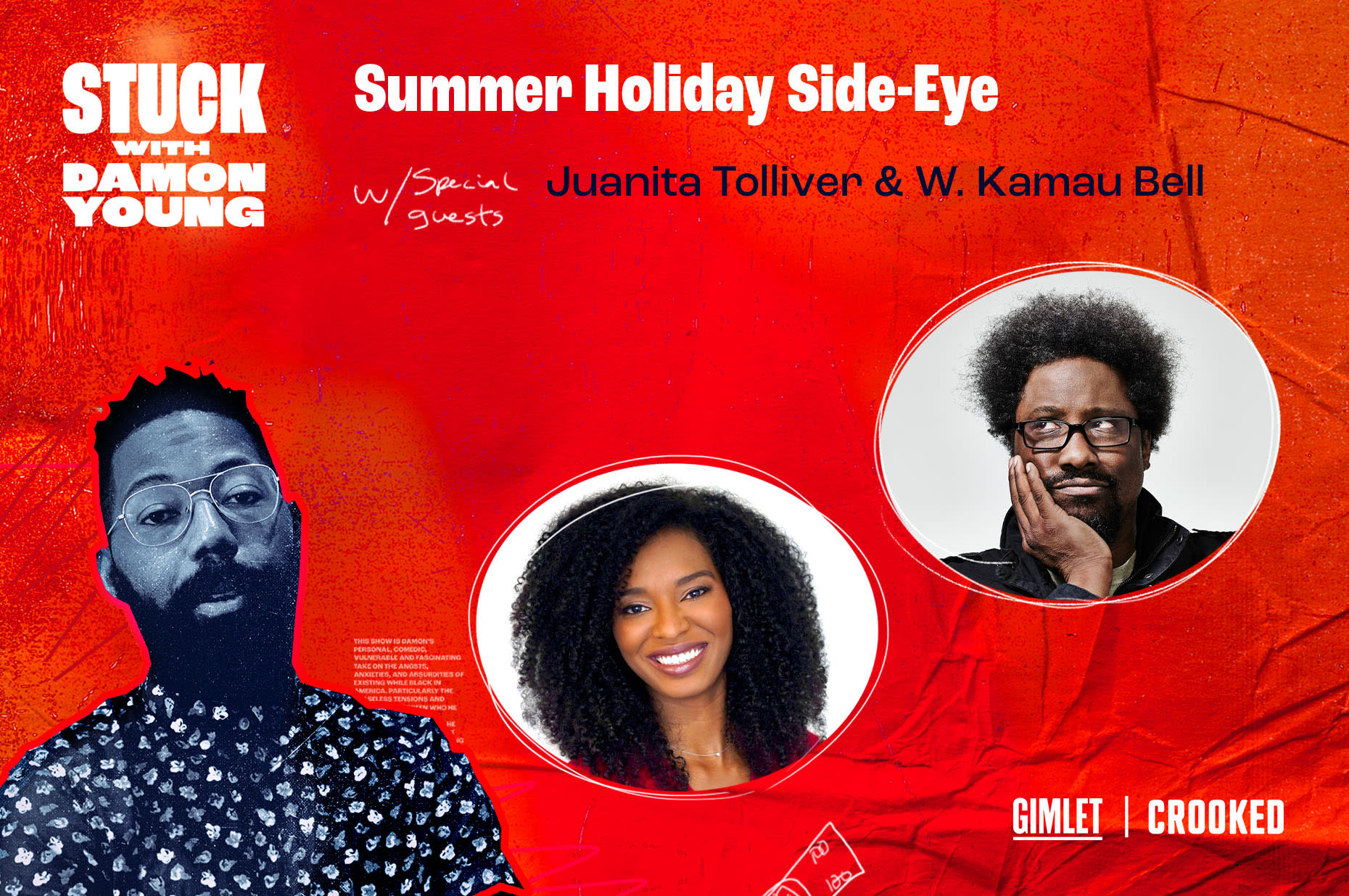 Damon Young: Welcome back, everyone to Stuck with Damon Young. The show where we don’t celebrate shit on the 4th of July. I mean, sure, we might be off of work and you might eat a grilled hotdog. We might watch some fireworks, which I guess does sound like a celebration, but still, we need celebration. So my relationship with America, the concept of patriotism, and even a celebration of these summer holidays has evolved as my conscientiousness about our country has. But I still carry some really deep ambivalence about what celebration even means. And to attempt to get to the bottom of this bottomless ambivalence. I’m joined by Juanita Tolliver, host of the Crooked Media podcast What A Day. And then for dear Damon, W. Kamau Bell comes back to help answer a really difficult question about when it’s time to end a friendship. All right y’all. Let’s get it. [music plays] Juanita Tolliver is a political analyst for MSNBC and also the host of the Crooked Media podcast. What A Day. Juanita?