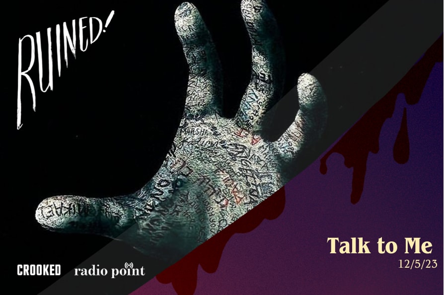 [theme music]: If scary movies give you dread. Keep you up late night in bed, here’s a podcast that will help you ease your mind. We’ll explain the plot real nicely then we’ll talk about what’s frightening, so you never have to have a spooky time. It’s Ruined.