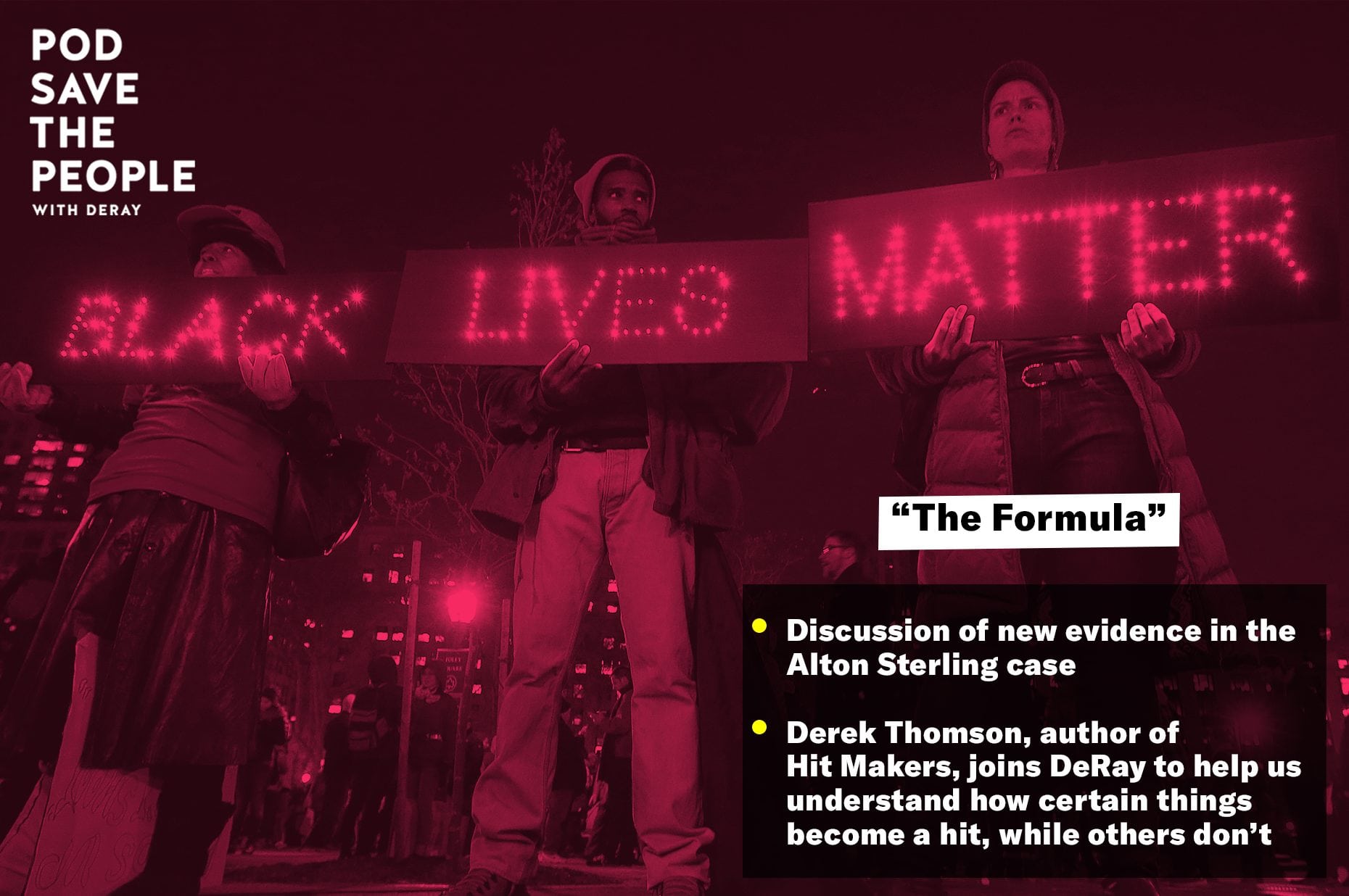 The full crew is together for the news, including a discussion of new evidence in the Alton Sterling case. Derek Thomson, author of Hit Makers, joins DeRay to help us understand how certain things become a hit, while others don’t. Beyoncé, social movements, Parkland and Billboard’s Top 100 are all discussed.