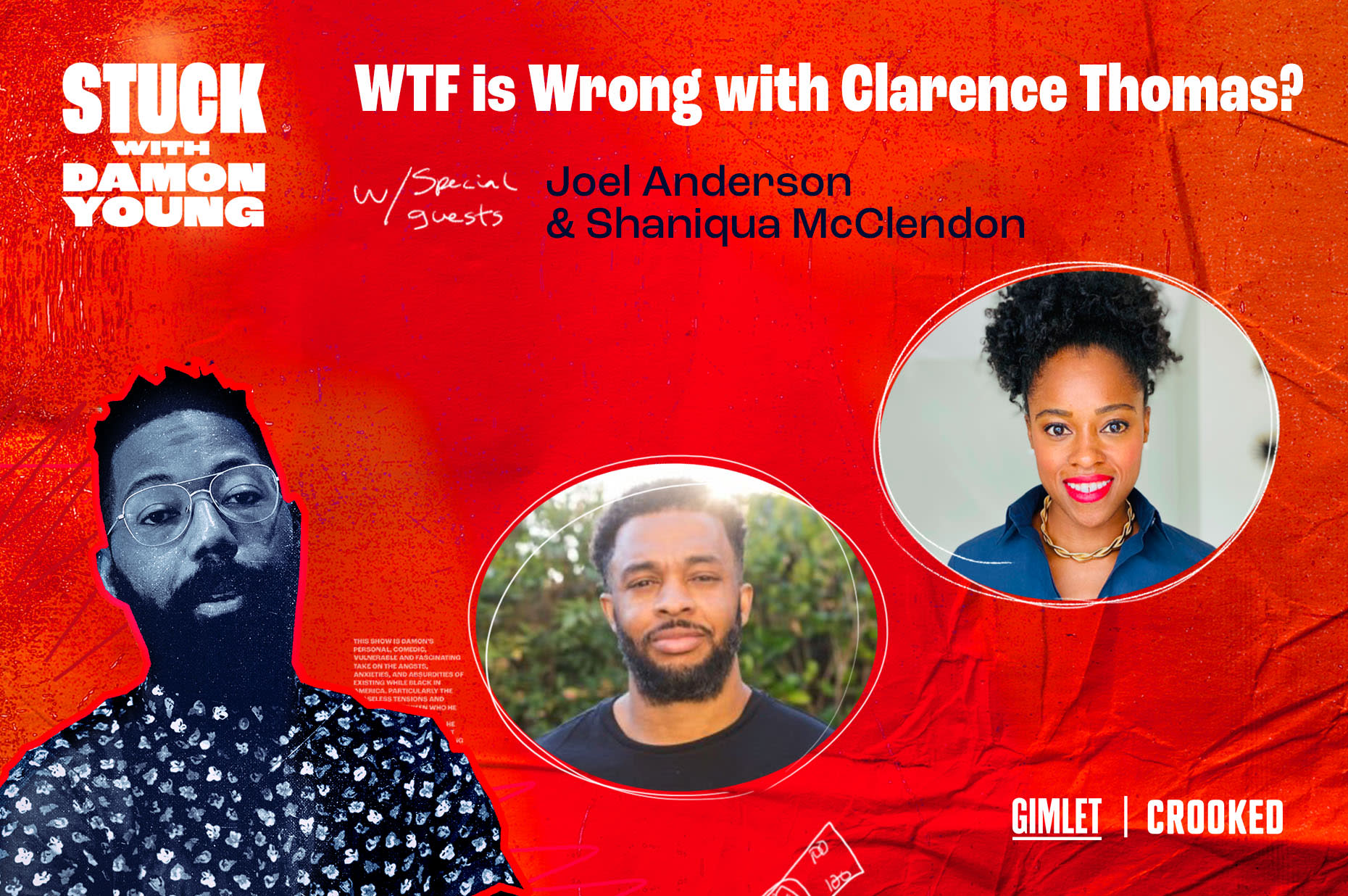 Damon Young: Welcome back, everyone to Stuck with Damon Young. The show where we all know that there’s no one more dangerous than a nigga ashamed to be a nigga. So the latest season of Slow Burn. The amazing podcast series from Slate is a deep dive into Supreme Court Justice Clarence Thomas. And not just like who he is, but why he is basically, you know, what the fuck is wrong with this nigga? And joining us today is Joel Anderson, host of Slow Burn. As we talk about a man who unfortunately is one of the ten most influential Black Americans of all time. And then for dear Damon, Shaniqua McClendon, vice president of Politics for Crooked Media, helps me answer a question from a listener who is tired of talking about politics and wants to know how to opt out. All right y’all. Let’s get it. [music plays] Joel Anderson is a staff writer at Slate and a host of Slate’s amazing podcast series, Slow Burn. Joel, what’s good man?
